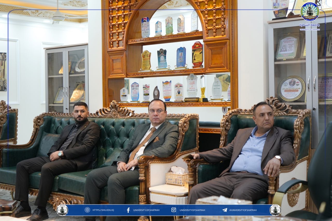 استقبل السيد رئيس جامعة الشطرة الأستاذ الدكتور باسم عبد الحسين جار الله، في مكتبه يوم الاثنين 1 كانون الأول 2025، اللجنة الوزارية المختصة بمتابعة الأقسام الداخلية في الجامعات العراقية.