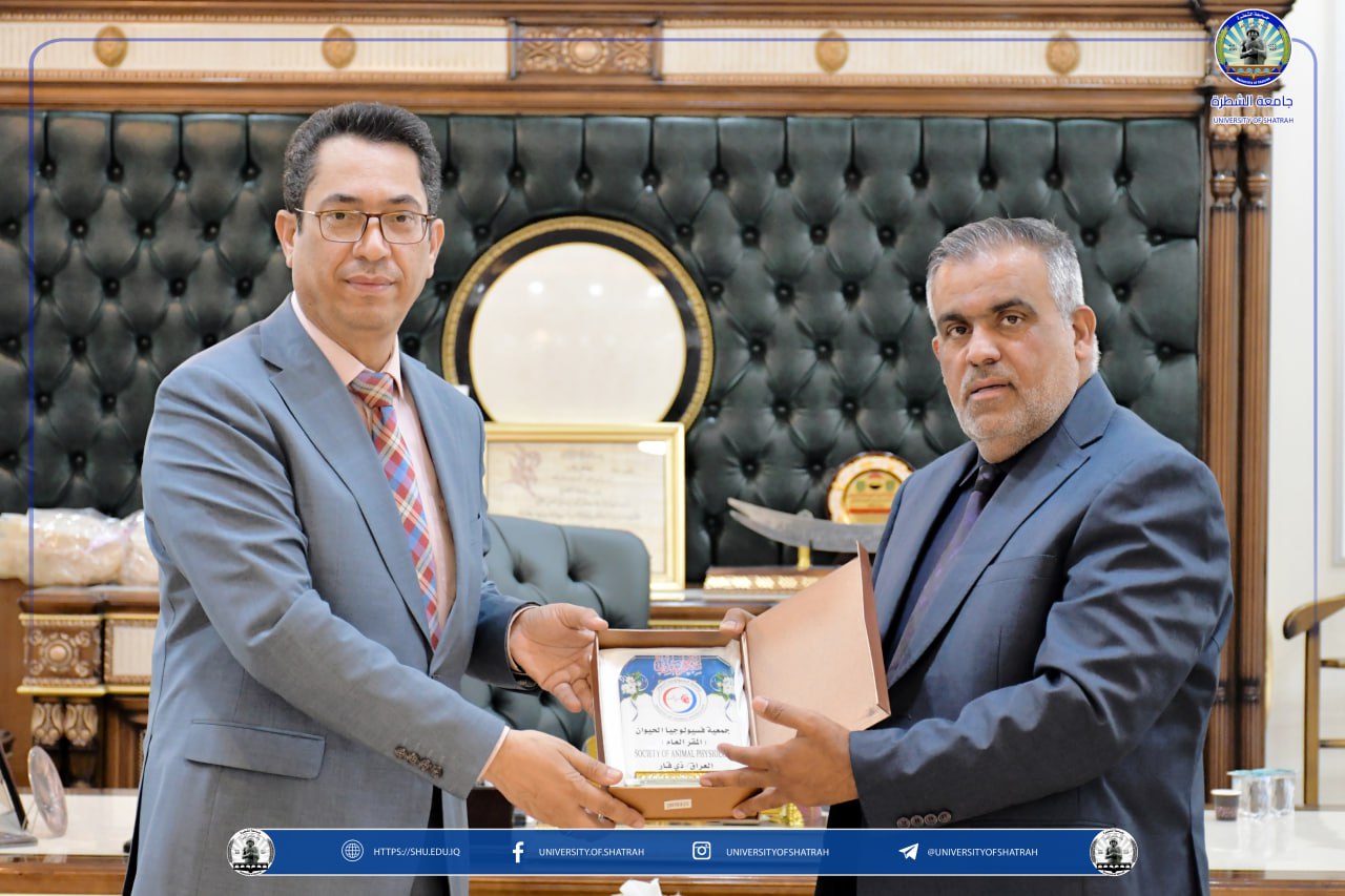 وفي ختام الزيارة، قدّم الأستاذ الدكتور خالد كاطع الفرطوسي درع الجمعية إلى السيد رئيس جامعة الشطرة، تقديرًا لجهود الجامعة في دعم الجمعية ومساهمتها في إنجاح أنشطتها العلمية.