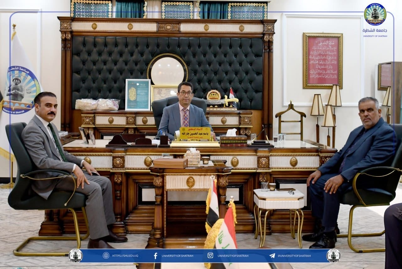 استقبل رئيس جامعة الشطرة الاستاذ الدكتور باسم عبد الحسين جار الله اليوم الثلاثاء ٢ كانون الاول ٢٠٢٥ وفدا من جمعية فسيولوجيا الحيوان برئاسة الأستاذ الدكتور خالد كاطع الفرطوسي رئيس الجمعية.