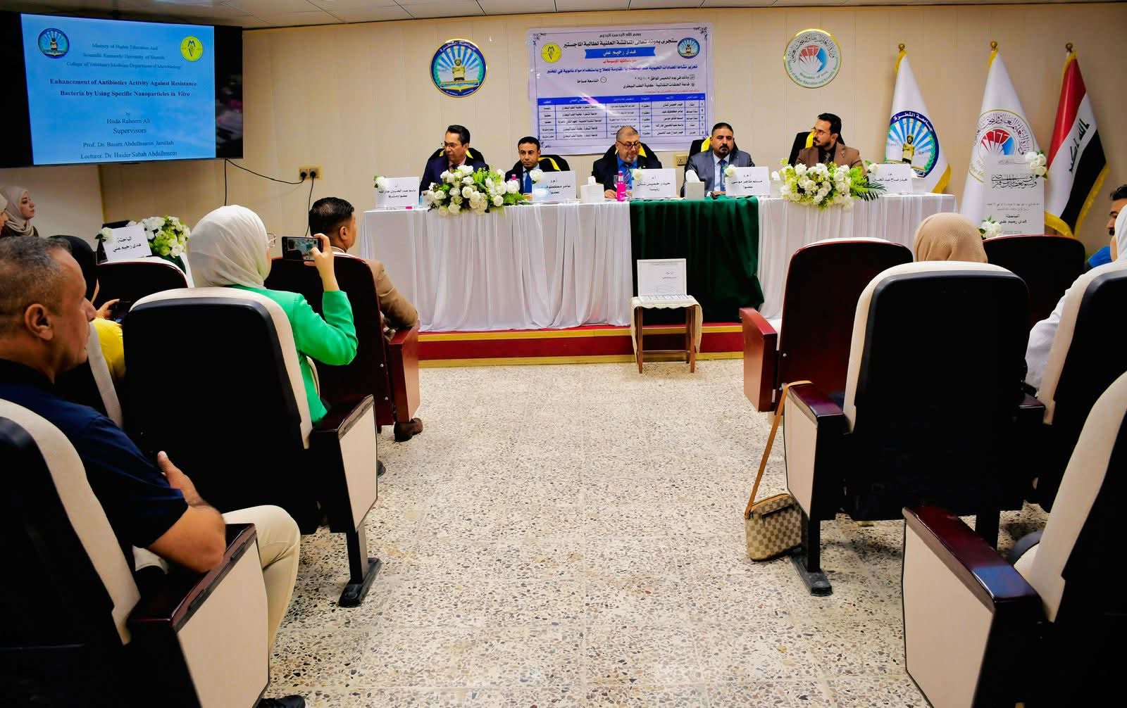 ناقشت كلية الطب البيطري بجامعة الشطرة، يوم الخميس الموافق 9 تشرين الأول 2025، رسالة ماجستير في فرع الأحياء المجهرية للطالبة هدى رحيم علي، والموسومة “تعزيز نشاط المضادات الحيوية ضد البكتريا المقاومة للعلاج باستخدام مواد نانوية في المختبر”.