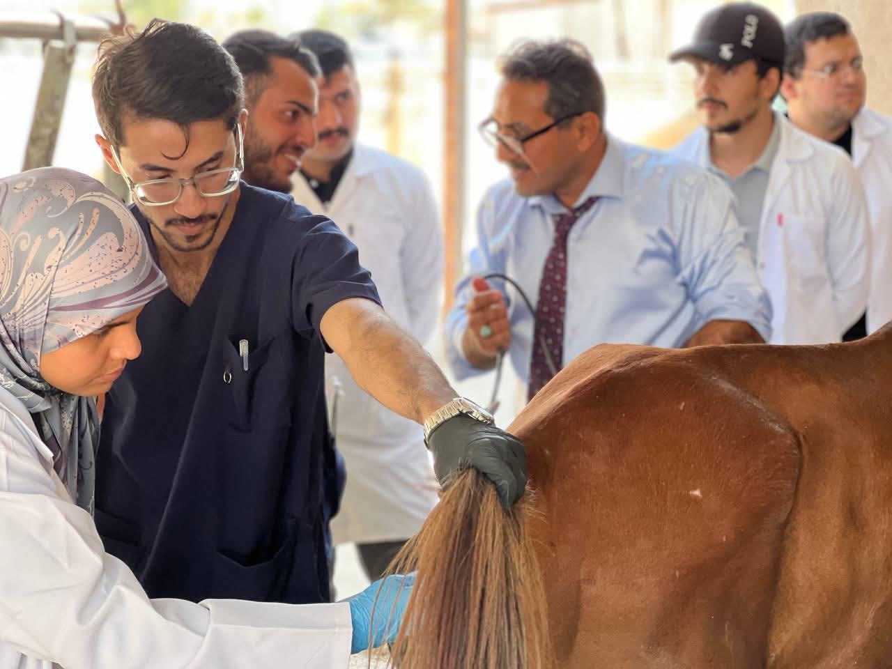 جانب من المحاضرة العملية لطلبة المرحلة الرابعة لمادة السريريات في كلية الطب البيطري