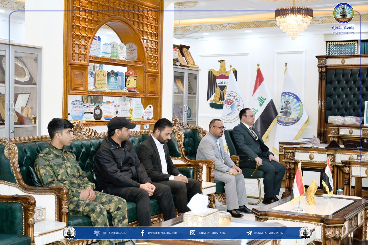 استقبل مساعد رئيس جامعة الشطرة للشؤون العلمية الأستاذ المساعد الدكتور فاضل محسن حمد، ممثل هيئة الحشد الشعبي في قضاء الشطرة وشمال محافظة ذي قار، وذلك في إطار تعزيز الشراكة المجتمعية وتوطيد التعاون بين الجانبين.