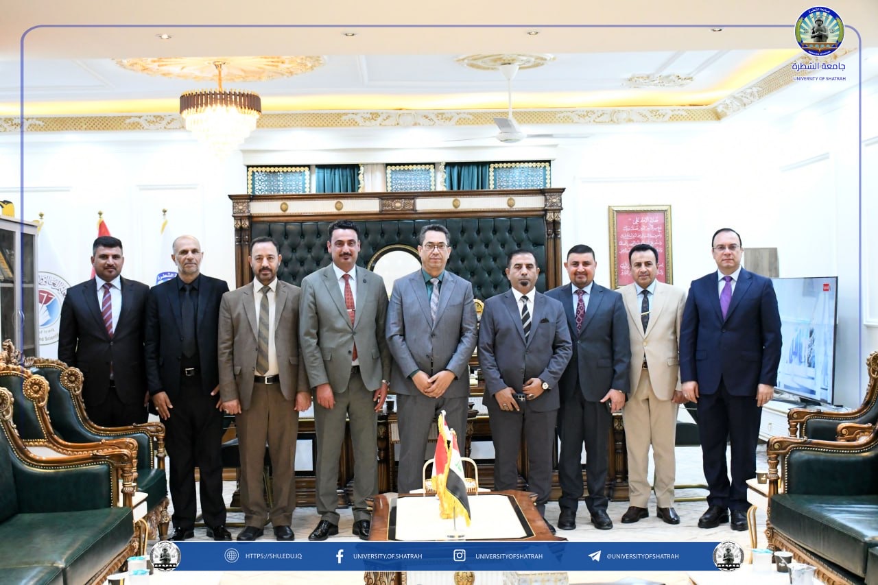 في إطار تعزيز التعاون العلمي رئيس الجامعة يستقبل وفد كلية الامام الكاظم ( ع ) اقسام ذي قار
